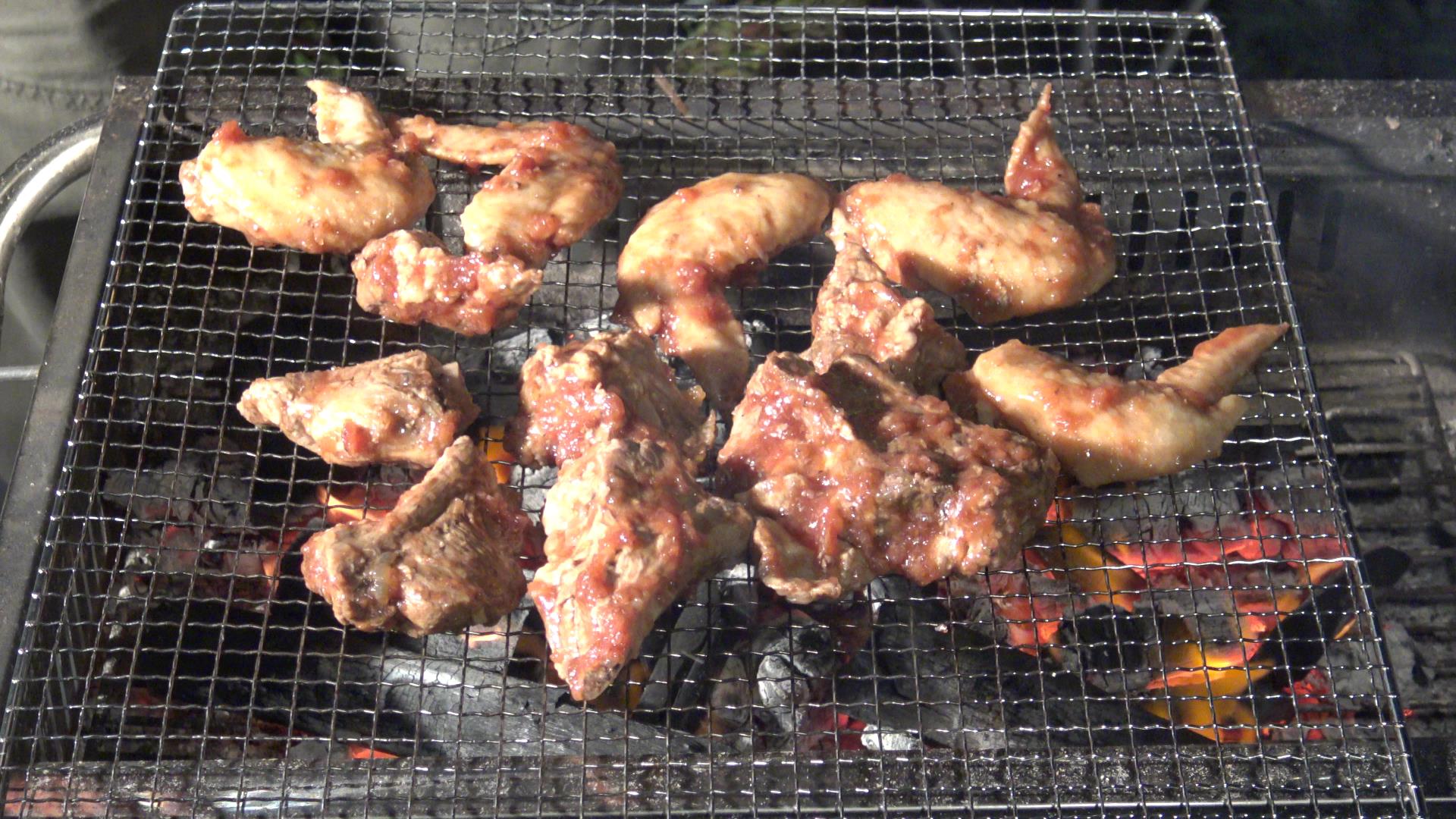 では本日のメイン!スペアリブを焼いていきましょう!鳥の手羽も焼いてみました!