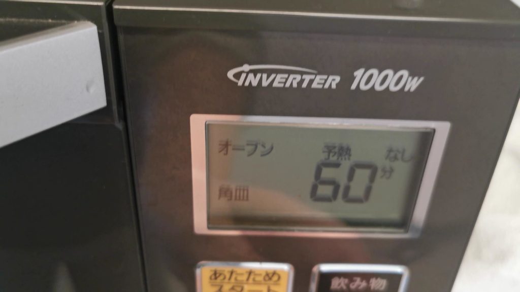 オーブンを予熱なしの100℃、60分にセットして焼いていきます!