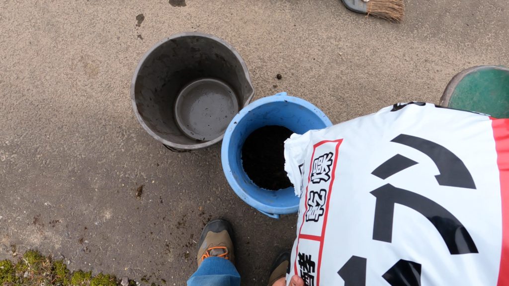 石灰と同時に入れるとアンモニアガスが発生するので1週間くらい待った方がいいということです!