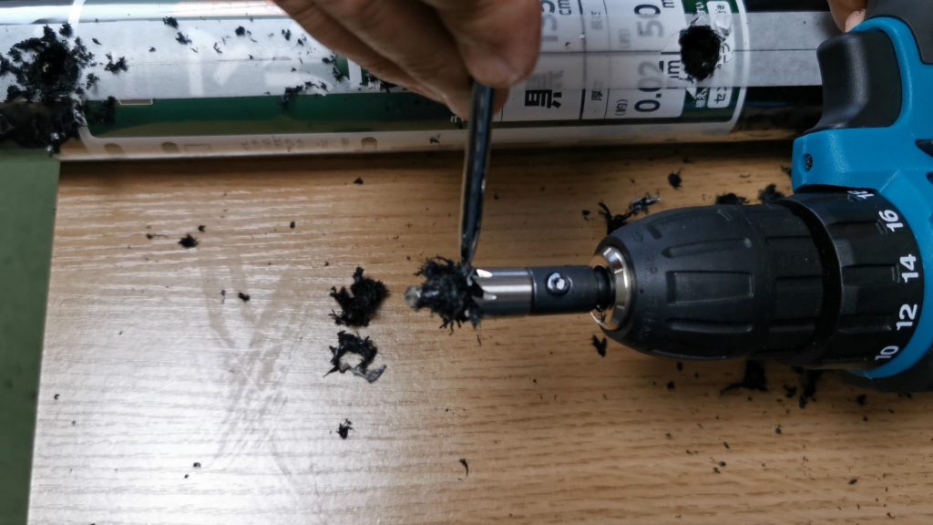 ビニールがホールソーに詰まってしまうのでそれを毎回取り除くのが大変ですね^^